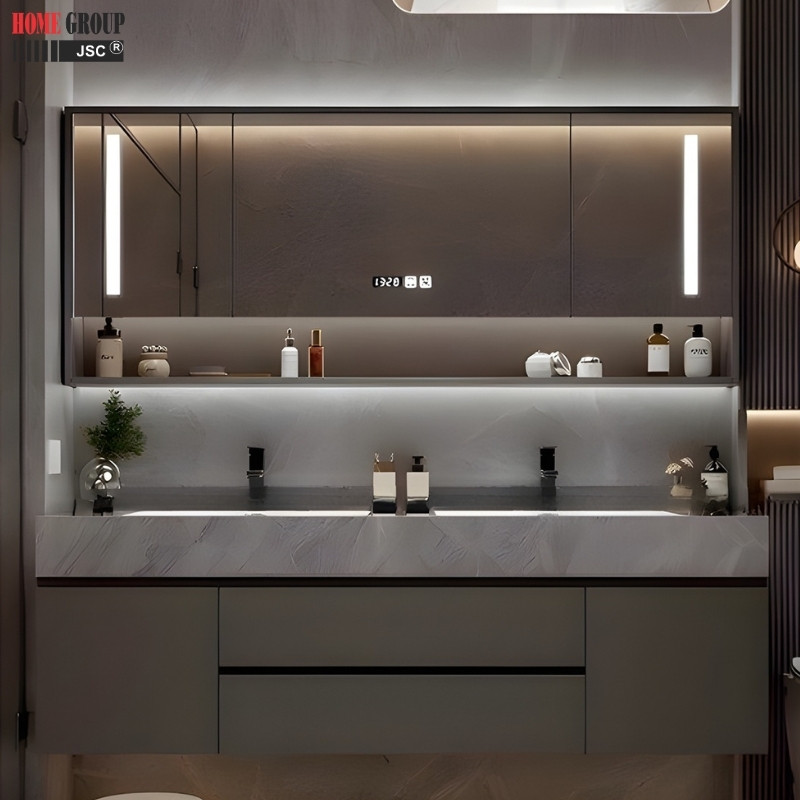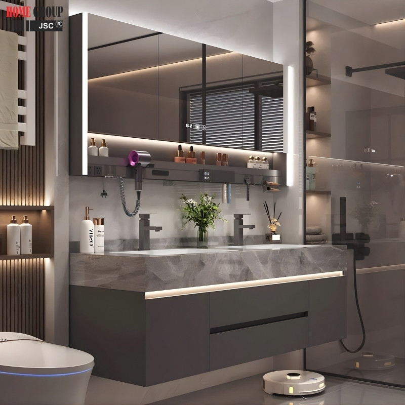 | Tiện ích | Lavabo đôi, ngăn tủ rộng, thoải mái lưu trữ vật dụng, gương đèn led với công nghệ chống mờ sương tiện lợi |